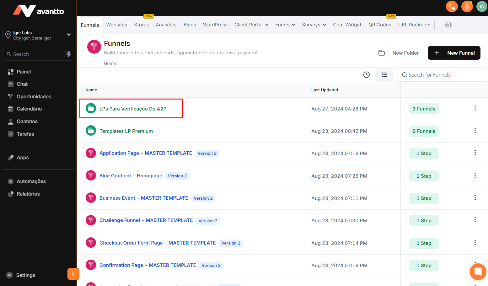 3.3 After integrating the subdomain, publish all landing pages from the "LPs for A2P verification" folder, available in "Apps > Funnels/Landing Pages". You can change the URL snippet if you wish; however, this is not necessary.