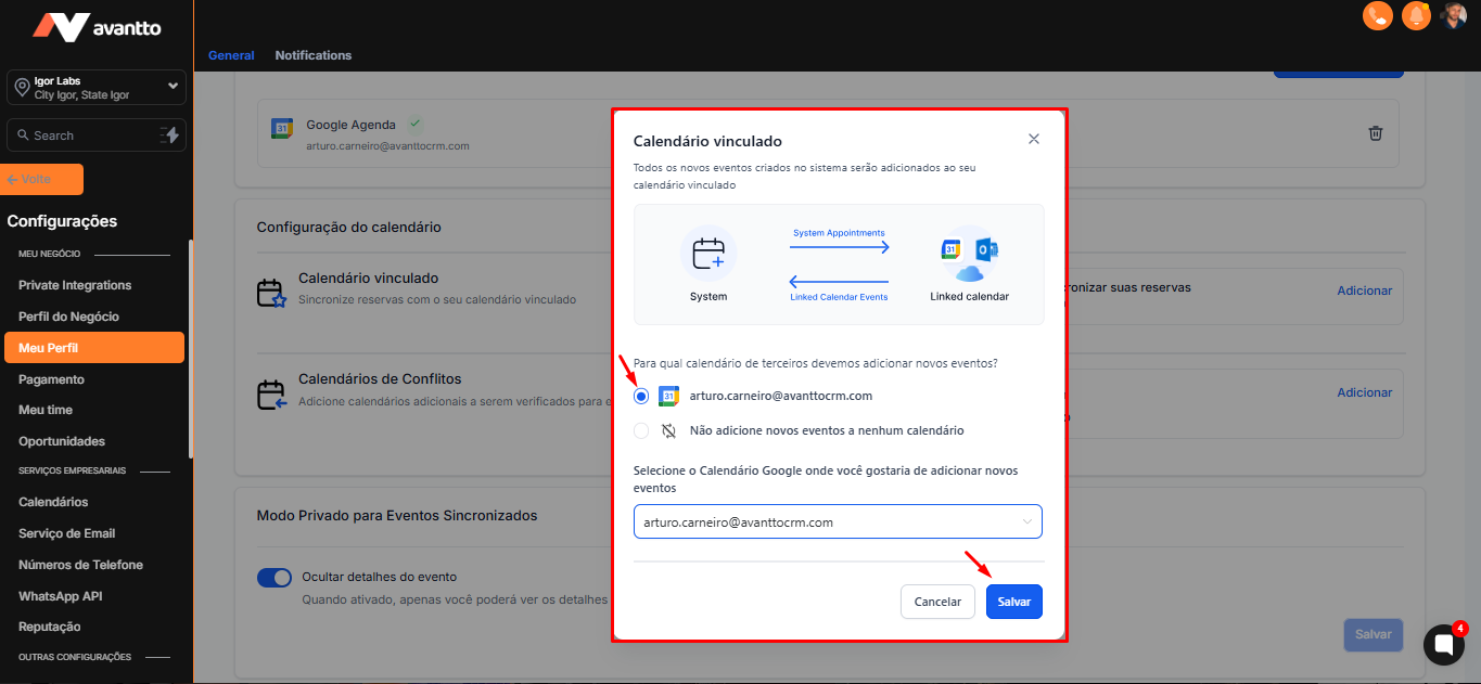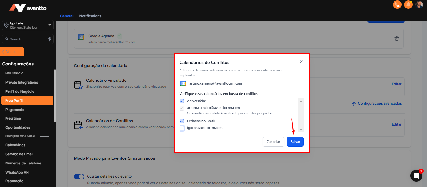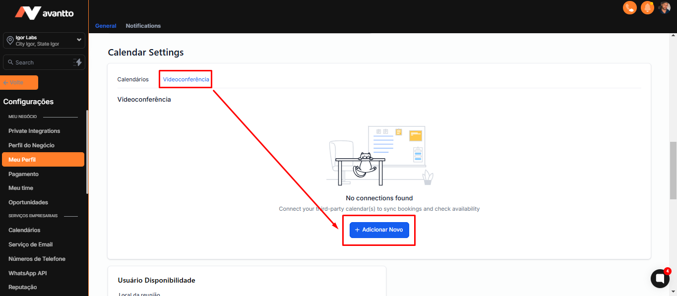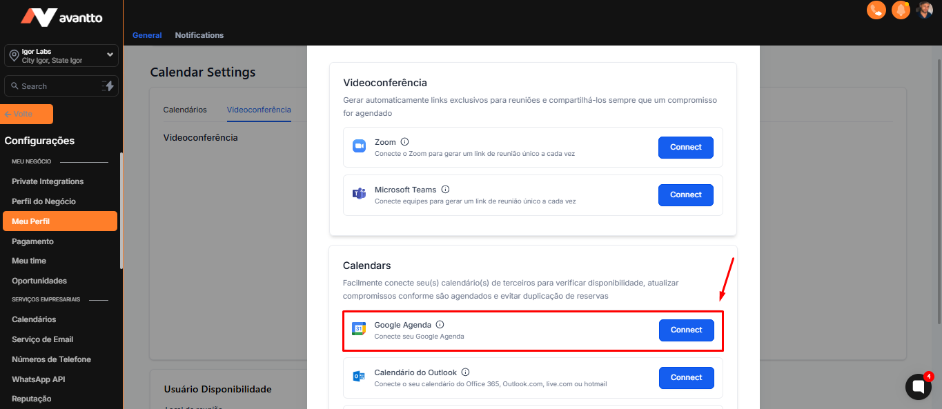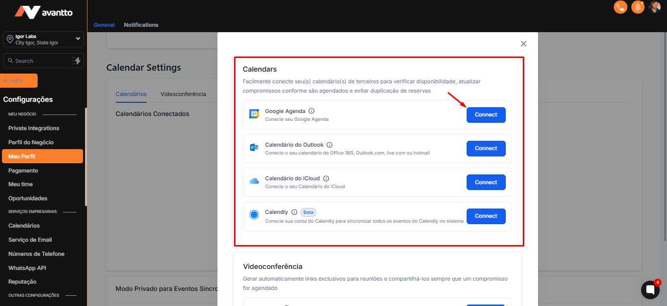 3.1 After integrating and configuring your schedule and video conferencing, it is important to confirm that the calendar configuration is correct, in order to use your preferred video conferencing to create the locations of the appointments.