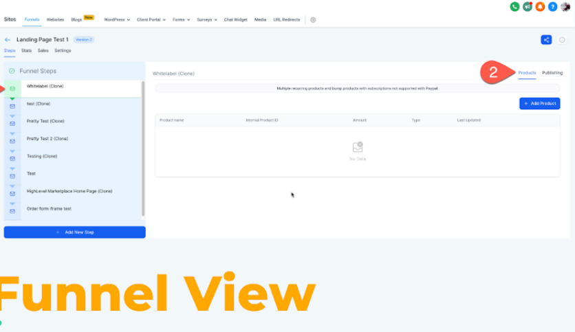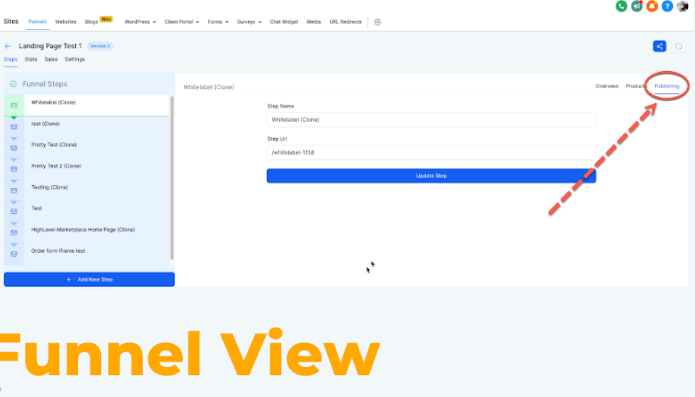 The term funnel in marketing means a series of websites used to capture leads. Funnels have “steps” that allow you to visualize a series of websites that a potential customer will visit. For example, in a booking funnel, I might have 3 Funnel Steps.