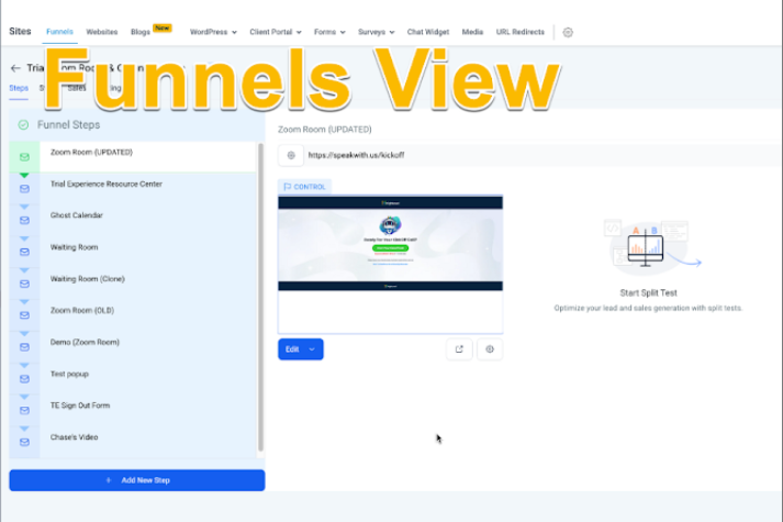 Funnels - In general, funnels have a very direct sequence of pages, which is why we offer split testing on funnels only. Funnels are a step-by-step series of web pages, generally used for a specific purpose like capturing leads or booking appointments.