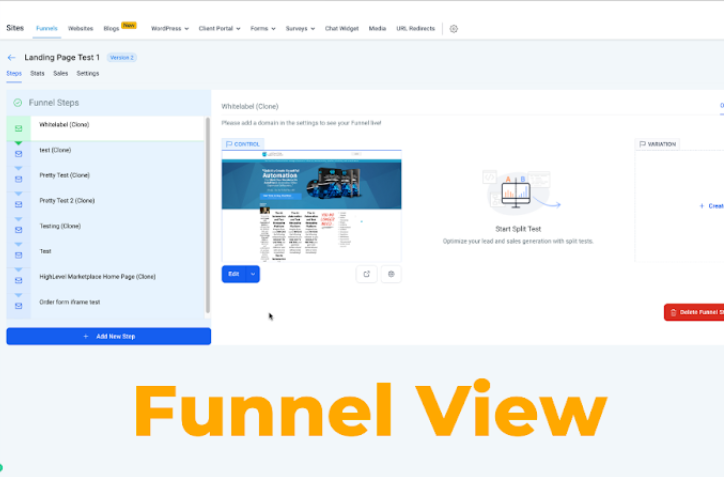 Split Testing in Funnels - You can only split test on Funnels. Split Testing in funnels is when you create a variation of a page to see which is better.