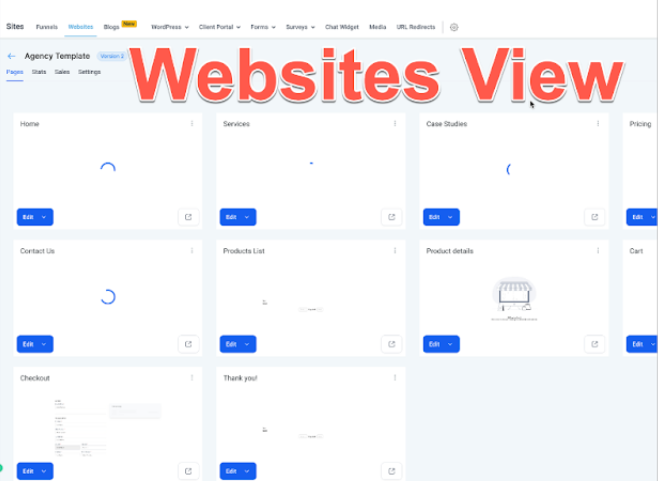 This is where all of the pages or steps of your site live. You can edit or preview a page from here. We land here before entering into the Site Builder. Upon exiting the Site Builder, we also land here.
