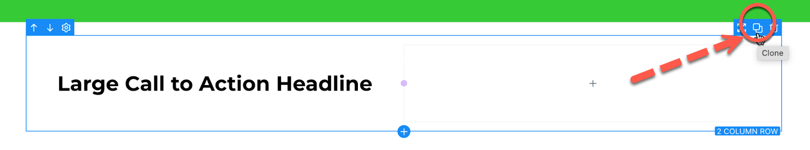 Hovering over any object will give you the ability to clone that object and everything within it. All settings and objects within the cloned section will be duplicated and then added below. This is great when you have a format or object that you want to use again or somewhere else on the site page.