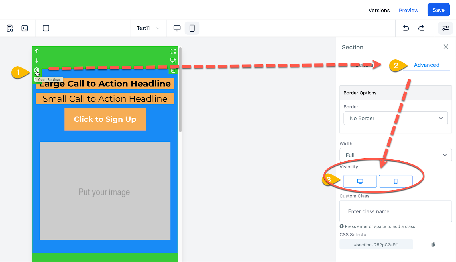 More than likely, you will find you need to create a unique section, row, column, or element for mobile view only. You can edit the visibility of your elements with the visibility setting. Select any object, go to settings, then advanced settings. This is very helpful when optimizing the look and feel of your desktop or mobile views for your site.