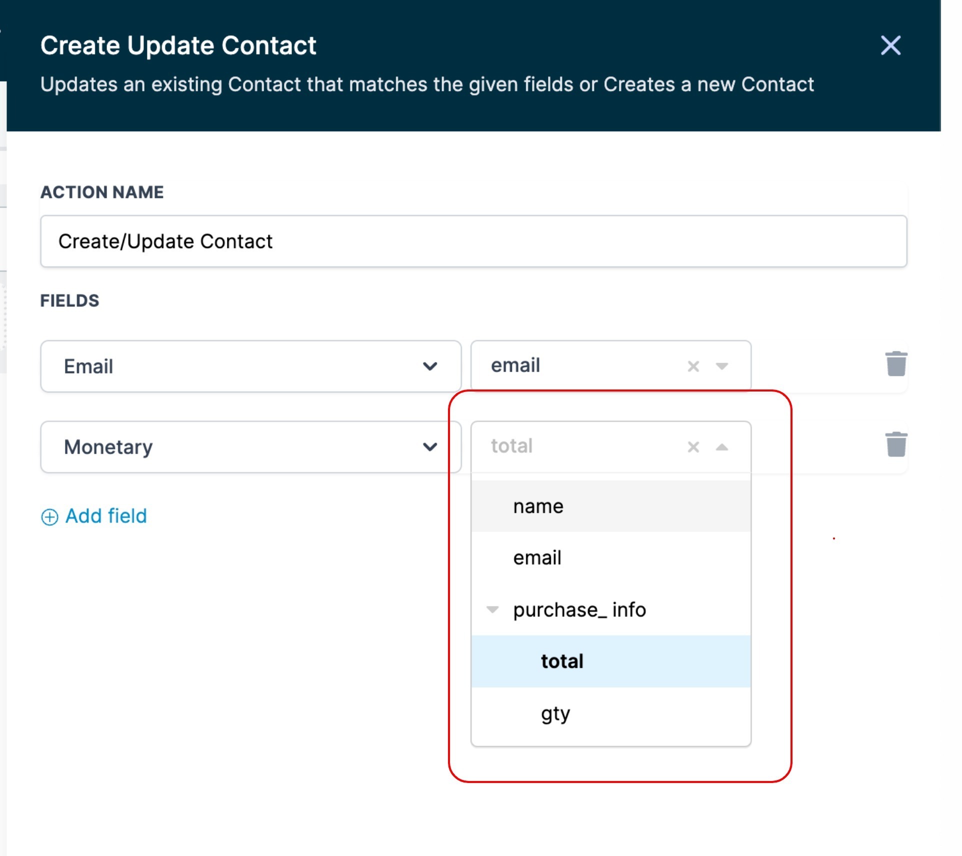 Example: Your eCommerce platform sends an HTTP POST request to the webhook URL with order details such as customer name, email, phone number, and order value. Your CRM then creates or updates the customer's contact information and adds the order details to their record.