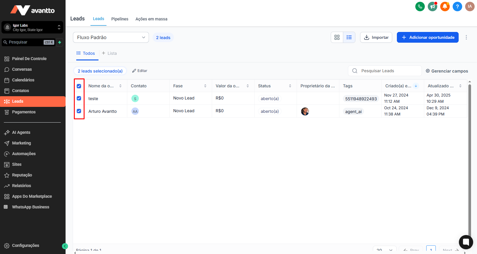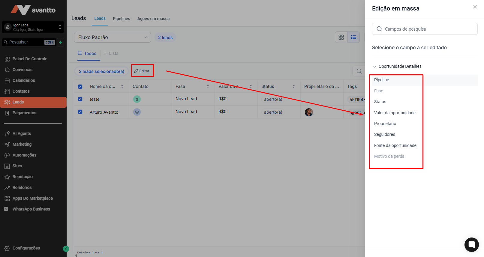 Choose multiple opportunities that you wish to edit and click on the Edit button at the top.