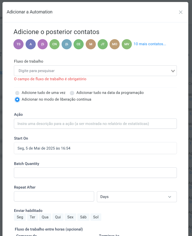 4. Select the automation you created: “Workflow - Envio de WhatsApp”