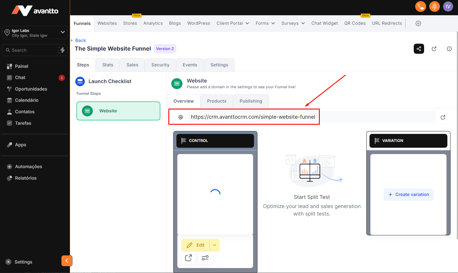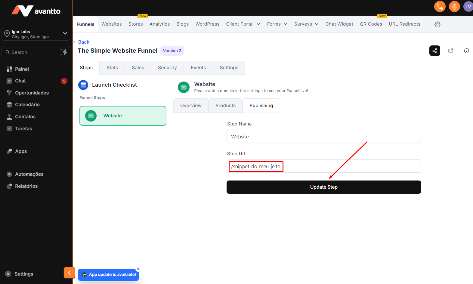 4.2 Altere o campo "Step Url" e clique em atualizar, você verá que a URL irá ser atualizada.