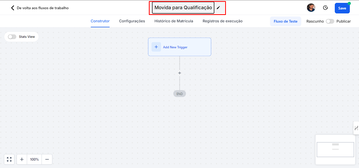 1.3 Ao acessar a página de criação de fluxo, você deverá atribuir um nome à automação que reflita sua finalidade.