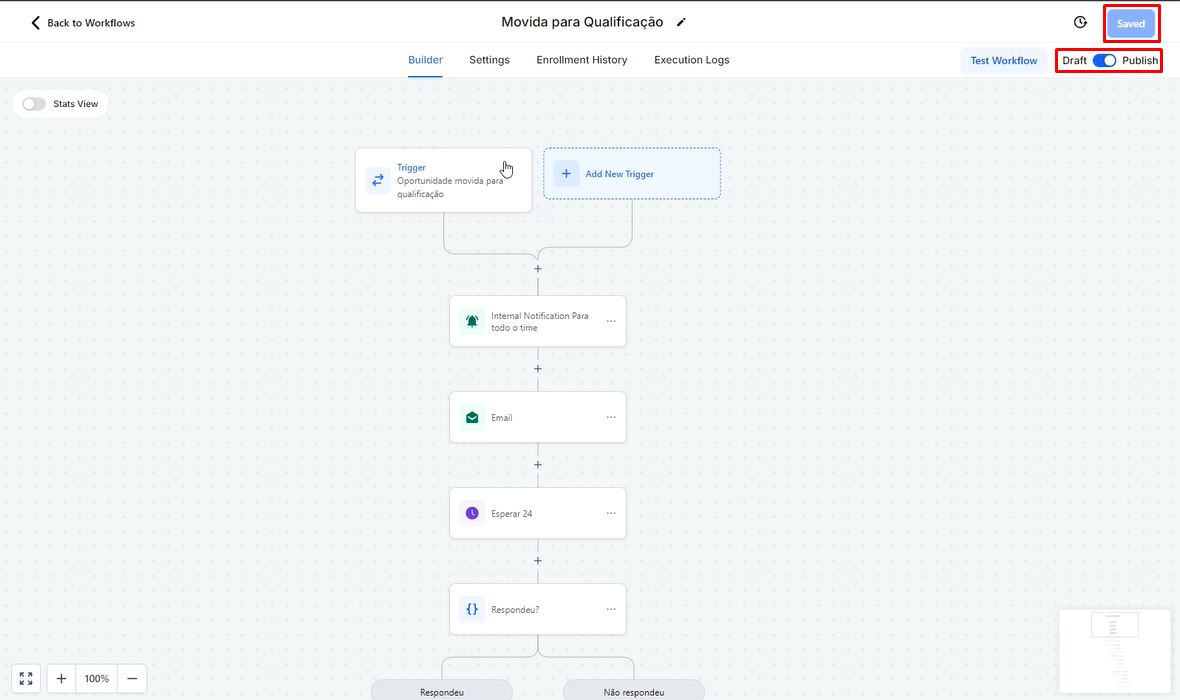Para finalizar, lembre-se sempre de ativar e testar a automação para garantir que tudo esteja funcionando corretamente. Não se esqueça de salvar suas alterações e ativar o fluxo ativando-a em "Publish".