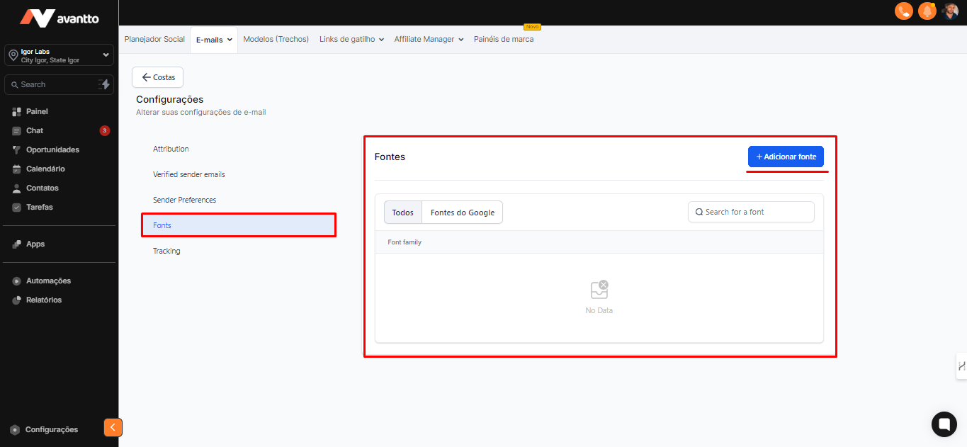 Se você quiser adicionar mais fontes, a plataforma oferece essa opção clicando em "Adicionar Fonte".