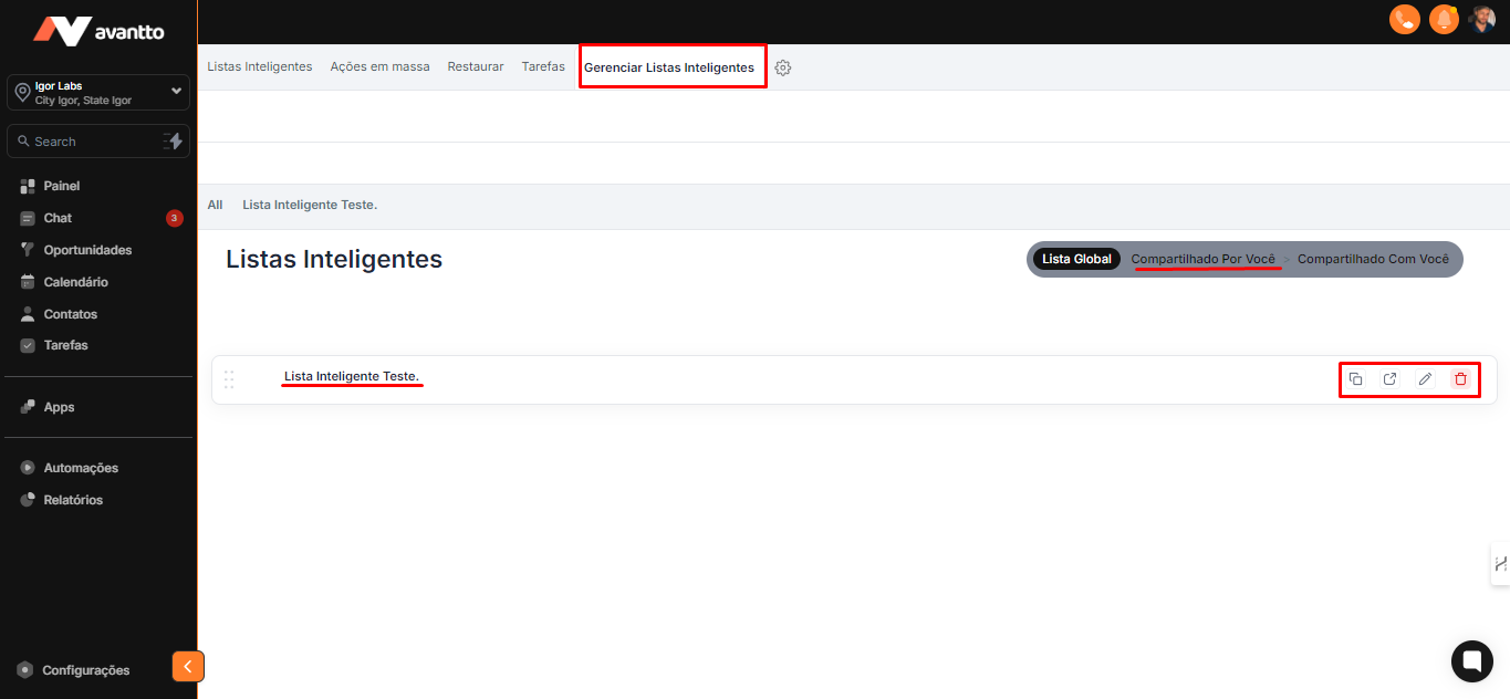 Nesta seção, você terá as opções de Duplicar, Compartilhar com outros, Editar e Excluir a lista conforme necessário.