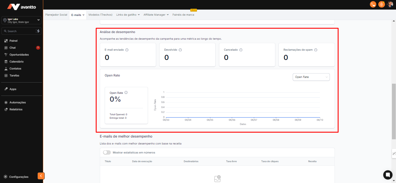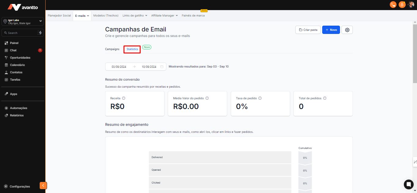 O painel mostrará quantos e-mails foram entregues, quantos foram abertos, quantos foram cancelados, entre outras métricas. Você poderá acessar uma variedade ainda maior de estatísticas.