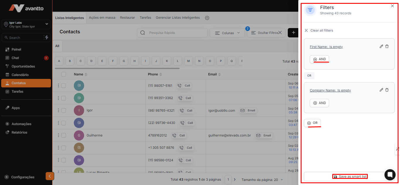 Assim, você pode criar uma lista contendo apenas os contatos que atendem às características filtradas.