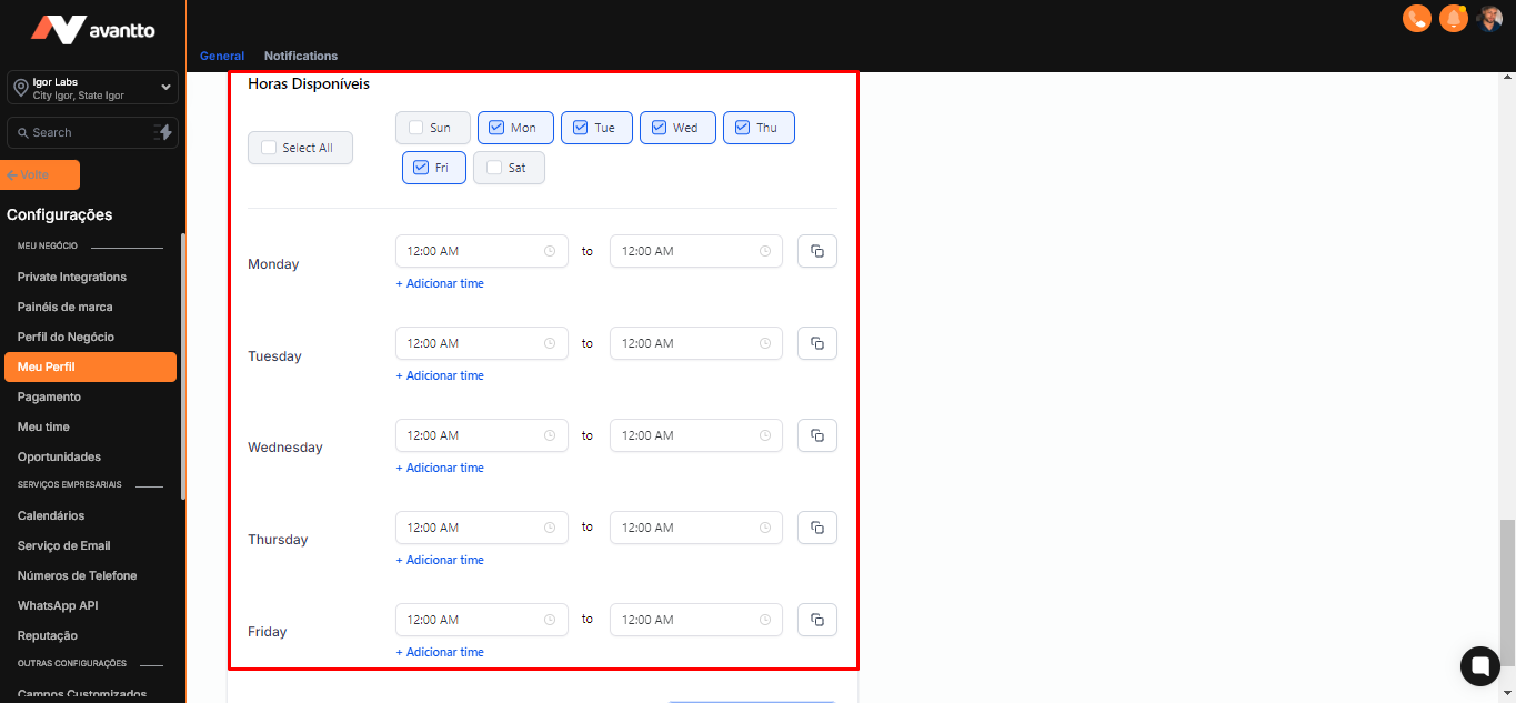 3.5 Você pode facilmente configurar os horários e os dias em que estará disponível para reuniões.