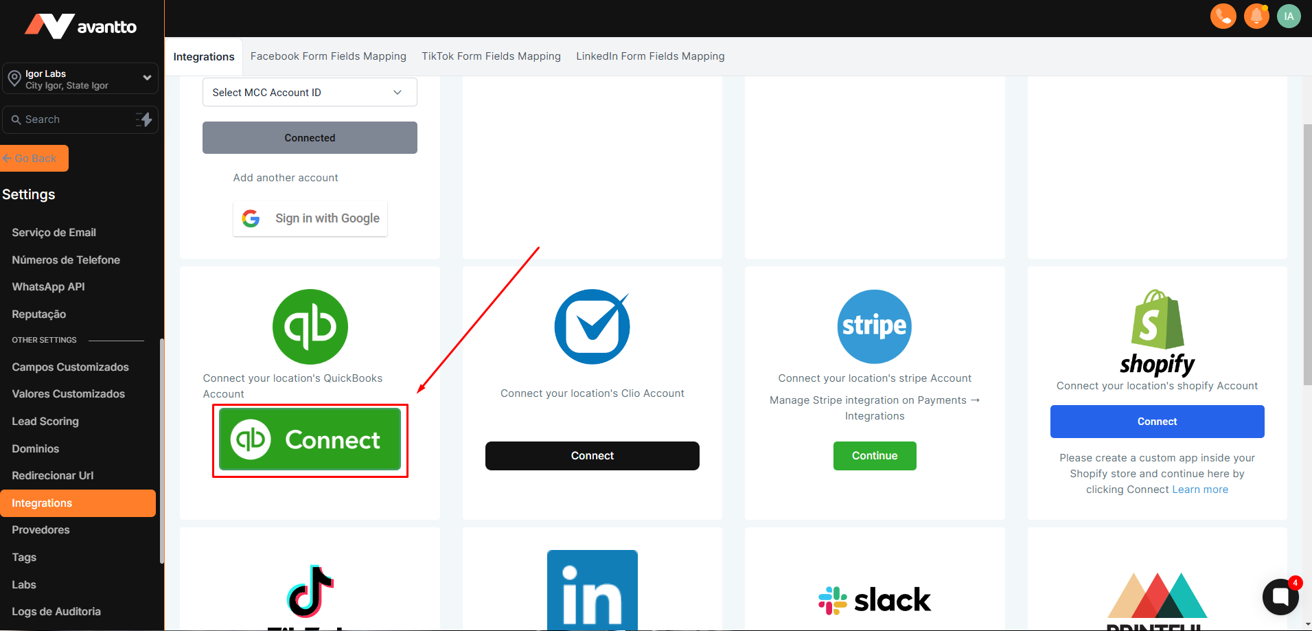 Isso não sincronizará faturas existentes já criadas dentro do Avantto. Apenas novas faturas criadas a partir de agora serão sincronizadas dentro do QBO