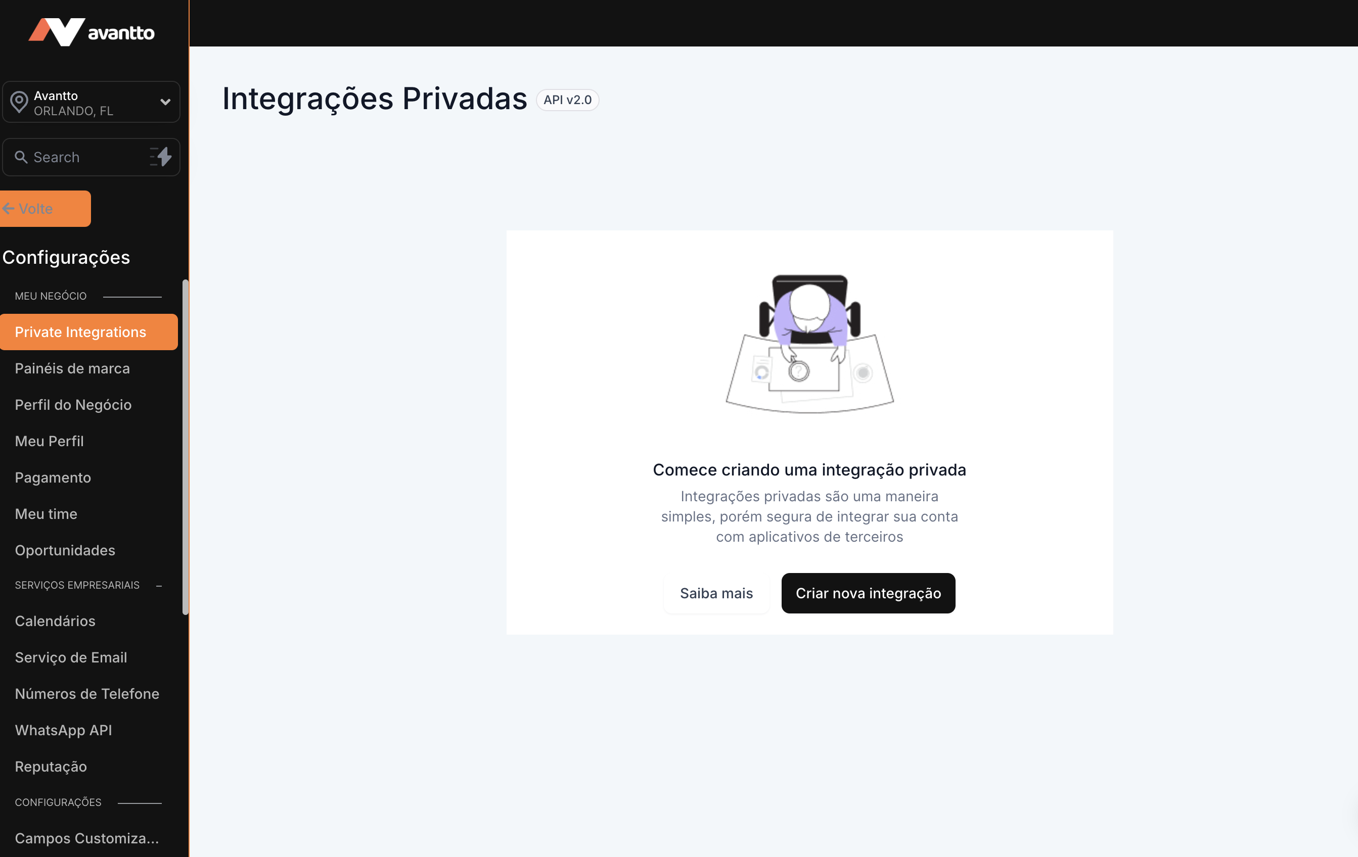 Integrações Privadas permitem que você crie integrações personalizadas poderosas entre sua conta e qualquer outro aplicativo de terceiros.