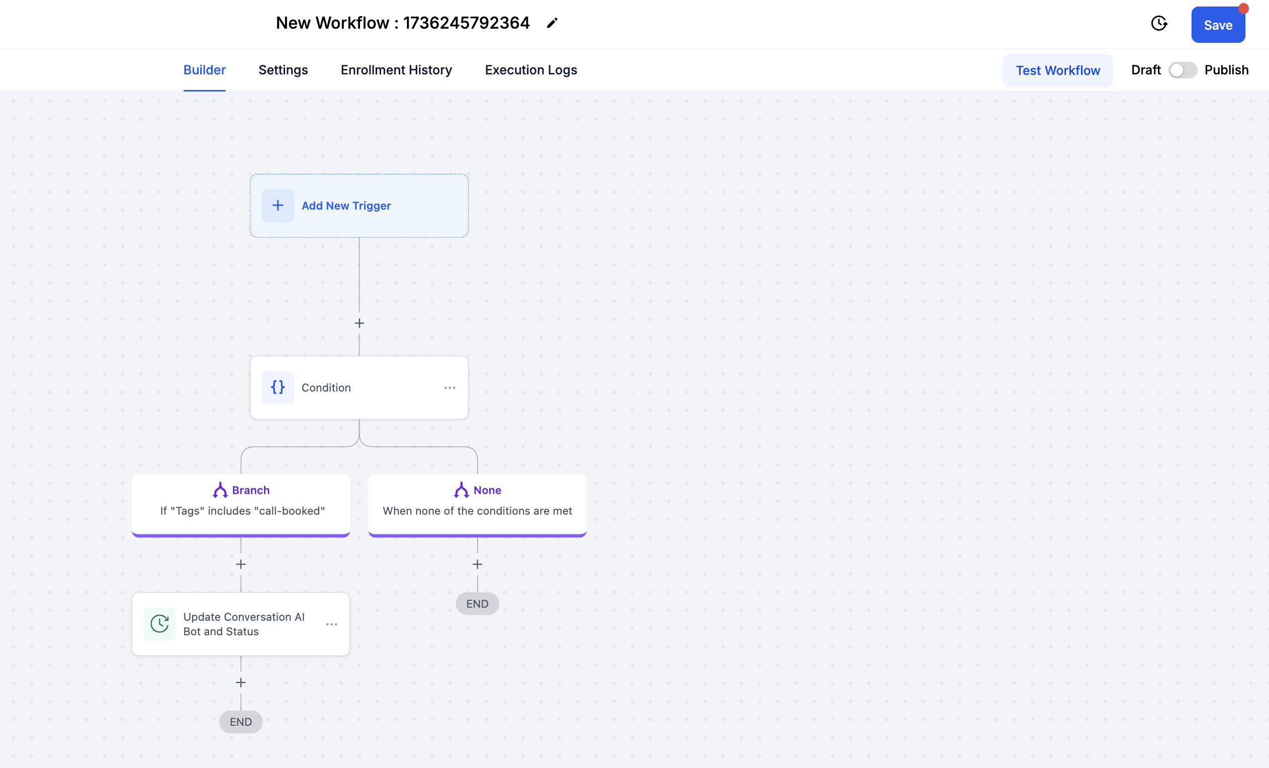 Selecione o gatilho, por exemplo, Contato adicionado com a Tag: Call Booked.