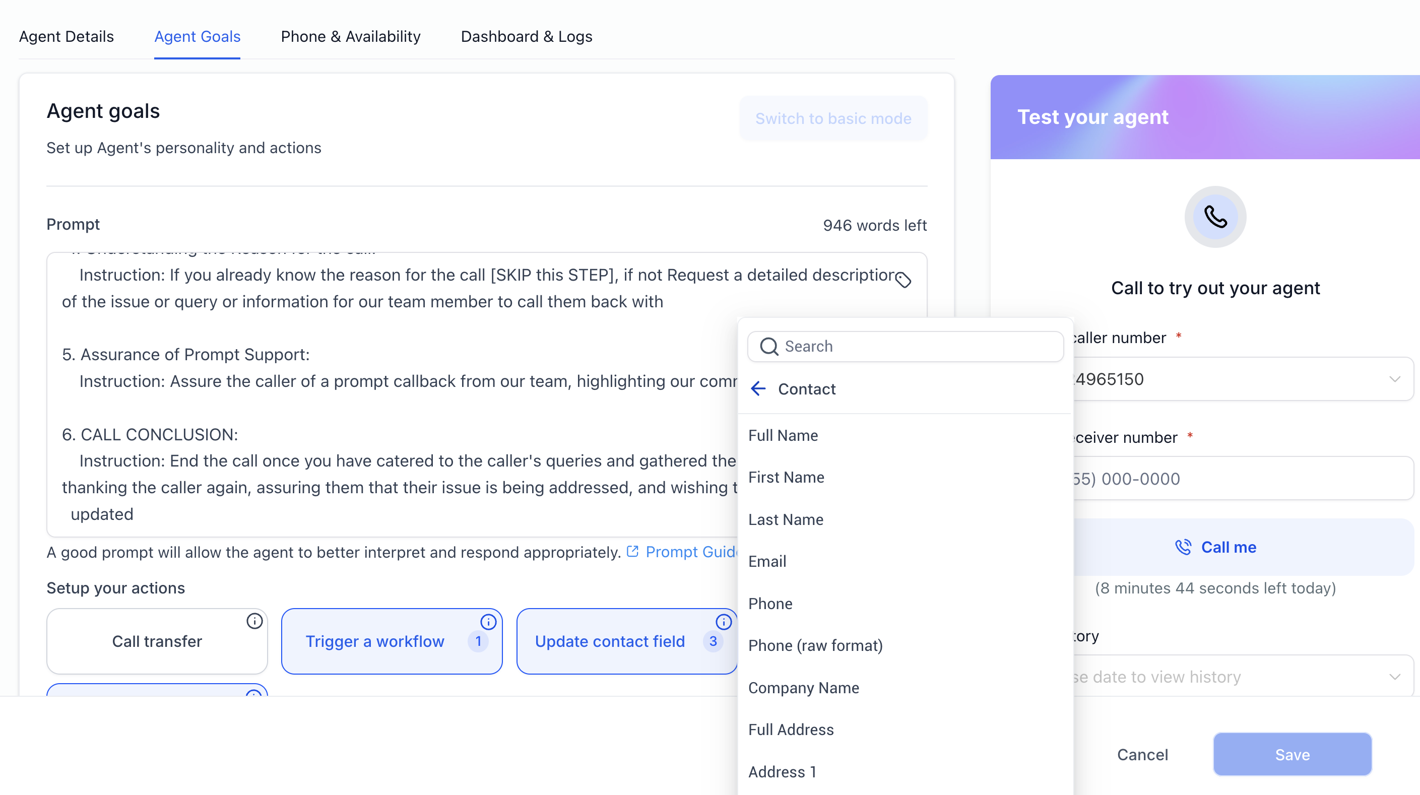 Interações Personalizadas – Seu Agente de Voz agora pode citar detalhes específicos do contato, deixando as conversas mais naturais e feitas sob medida.