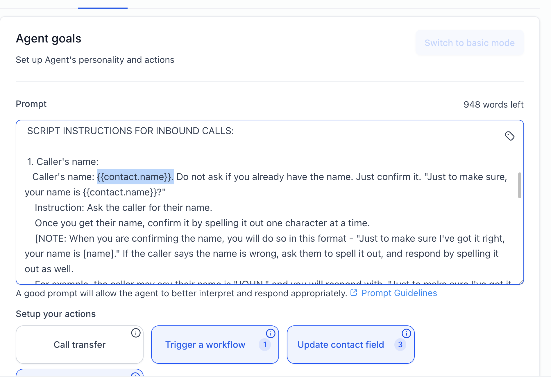 Adicionar variáveis personalizadas no seu prompt do Voice AI é fácil. Faz assim:
