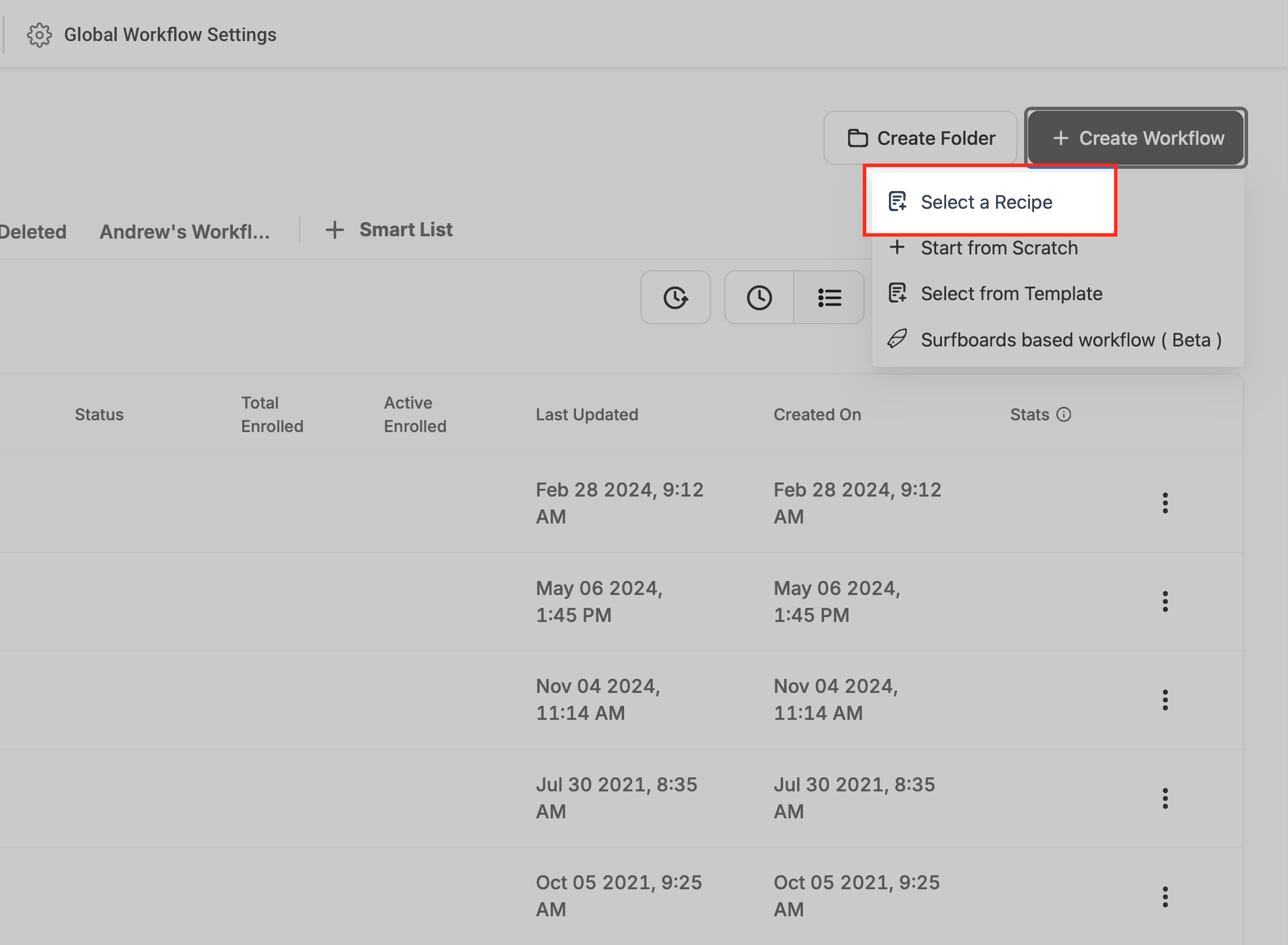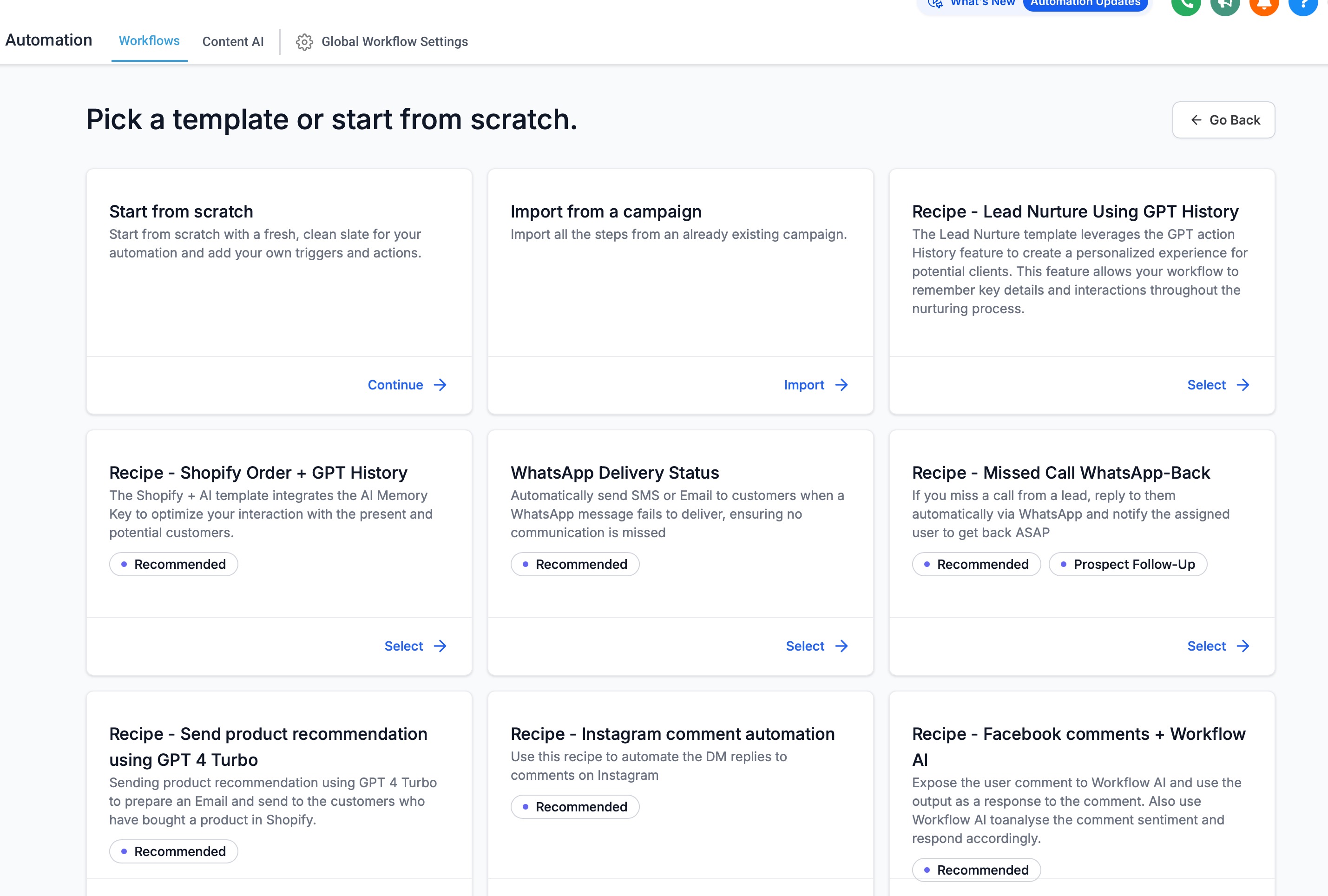 Escolha uma receita de workflow entre várias opções que combinam com o que você precisa.