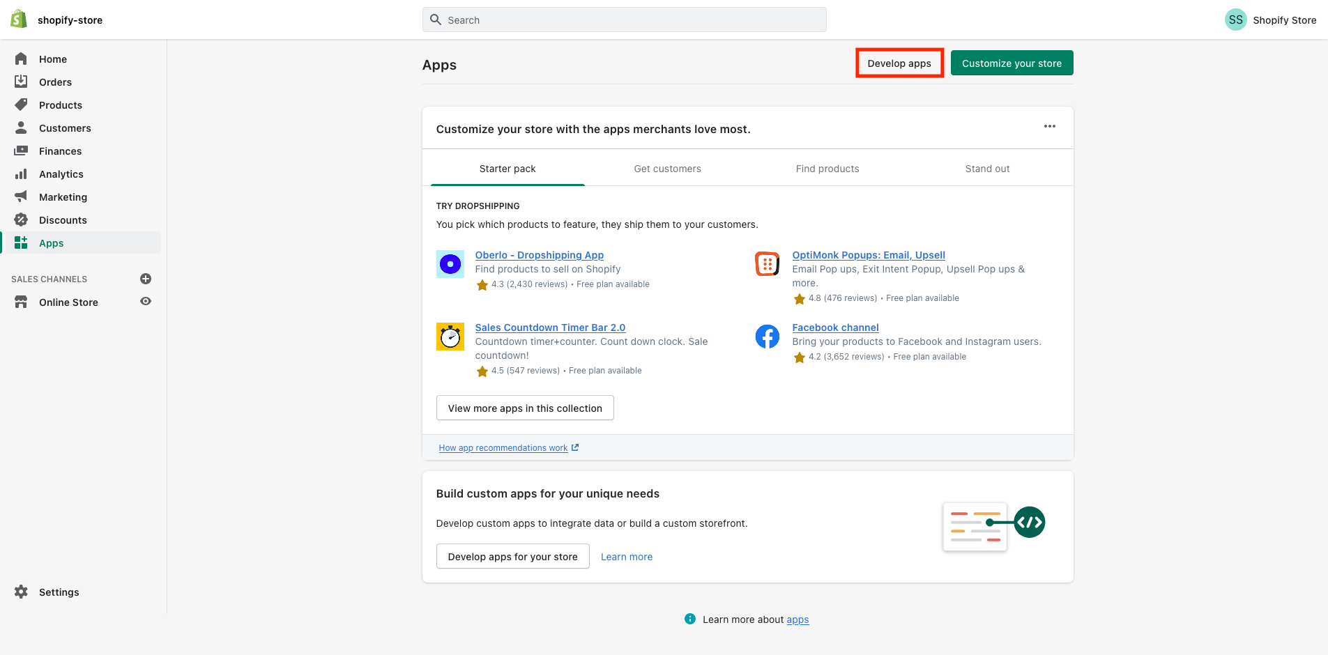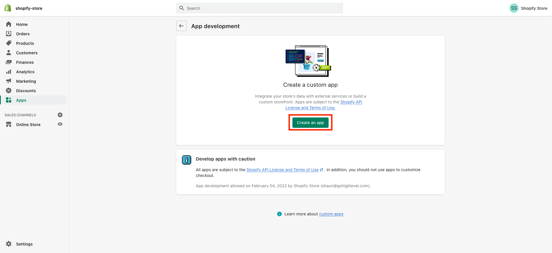 Antes de configurarmos a integração, precisamos criar um app personalizado na sua loja Shopify.