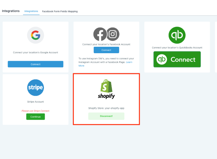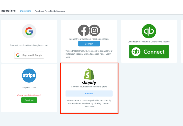 Integrar o Shopify com uma subconta do HighLevel é um processo de 2 etapas: