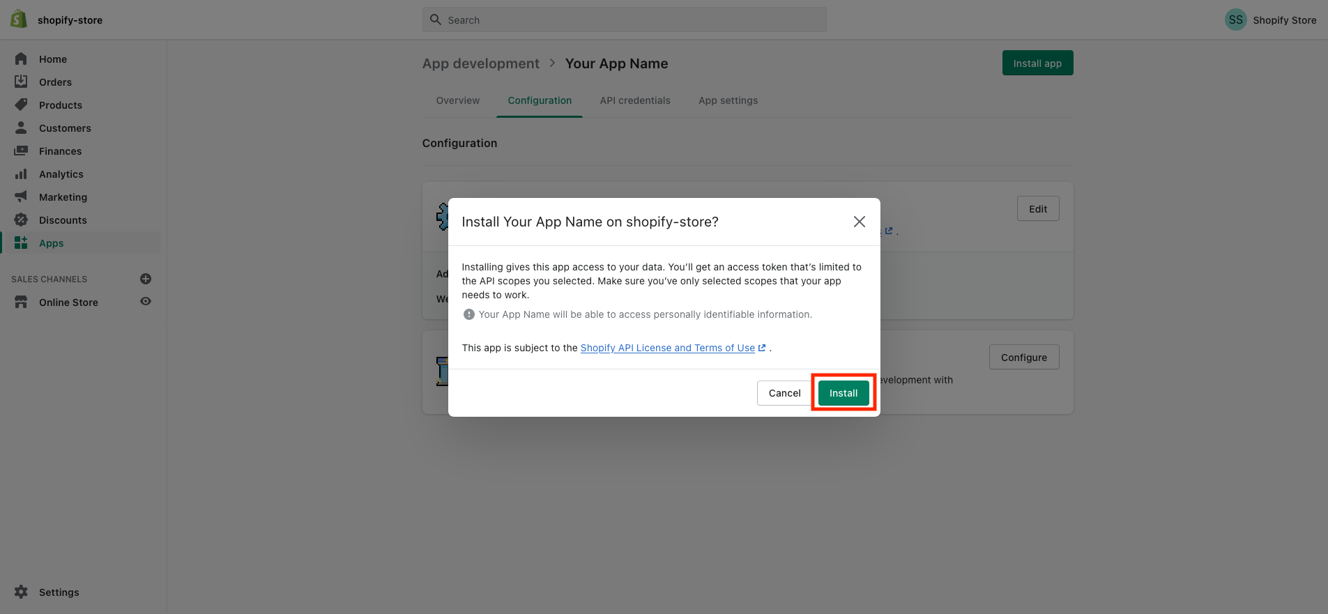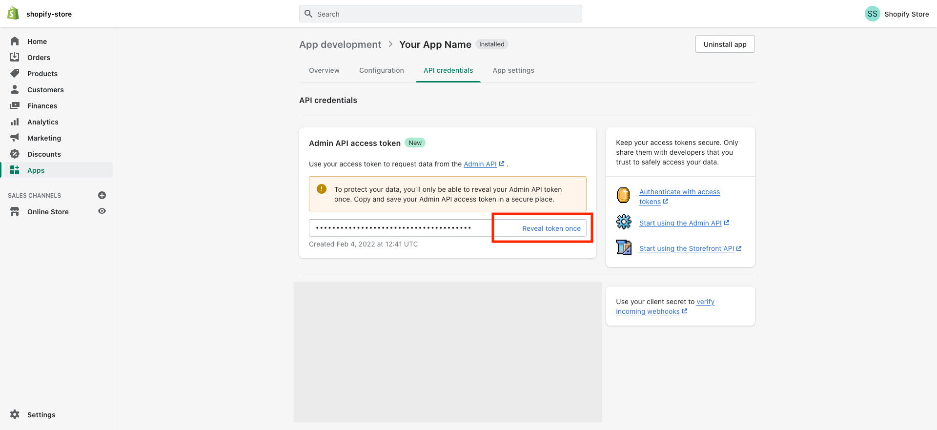 1.14 Depois de instalar, o "Admin API access token" que você precisa pra integração com a Shopify vai